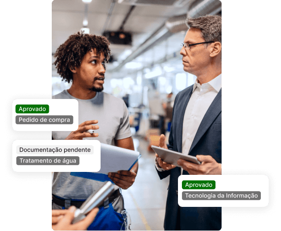 Sua equipe realiza a análise dos fornecedores e conferência das evidências, mas conta com suporte técnico da plataforma e apoio de consultores para dúvidas jurídicas.